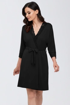 ALLISON - Morgenmantel aus Viskose mit Spitzenbesatz in Schwarz