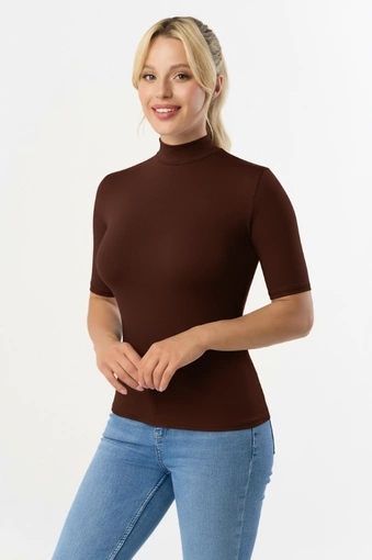 LAYLA - kurzärmeliges Halbgolf in Kakao Farbe