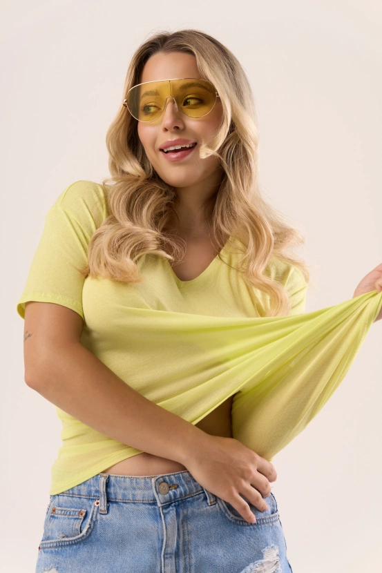 SERINA - lekka bluzka z wiskozy w kolorze limonkowym
