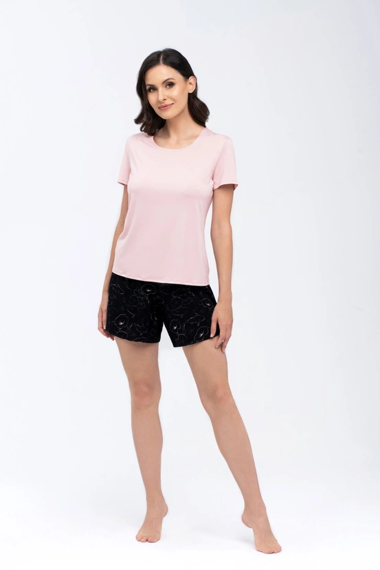 Piżamka składająca się z klasycznej bluzeczki o okrągłym dekolcie z krótkim rękawem i spodenek.