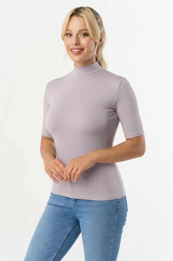- Blouse with half turtleneck and short sleeves in soft viscose. Comfortable, elegant and perfect for everyday use.