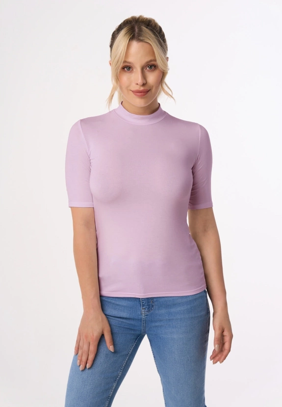 Blouse with half turtleneck and short sleeves is the perfect combination of classics and comfort. Made of soft, stretchy knit fabric (94% viscose, 6% elastane), it fits pleasantly on the figure and provides freedom of movement throughout the day.