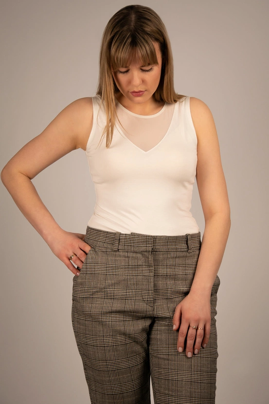 MARIAH - top z tiulowym detalem w kolorze ecru