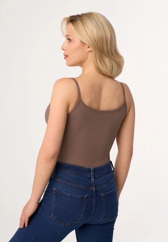 Thin-strapped ribbed cotton top is a comfortable option for your everyday closet. Soft knit fabric (92% cotton, 8% elastane) pleasantly adapts to the figure, providing full comfort and freedom of movement.