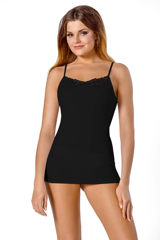 Bawełniana podkoszulka na ramiączkach z elegancką aplikacją z koronki przy dekolcie.