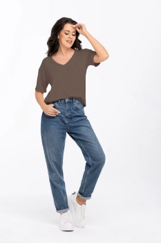 PATTY - luźna koszulka z dekoltem w serek w kolorze kakaowym