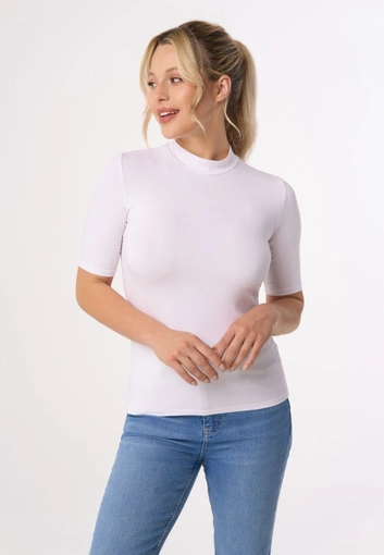 LAYLA - półgolf z krótkim rękawem w kolorze białym