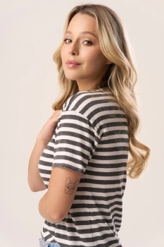 SERINA - lekka bluzka z wiskozy na krótki rękaw w ciemne paski