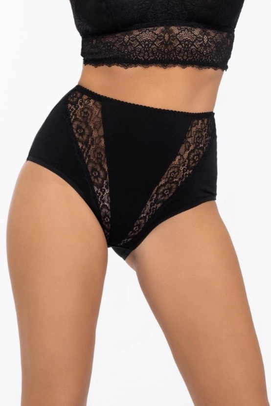 Majtki z wysokim stanem oraz elementami koronki w kolorze czarnym (174)